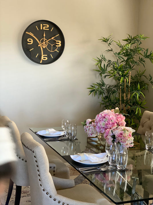59 Cm Gold & Black Chumming Process Moving Gear Wall clock