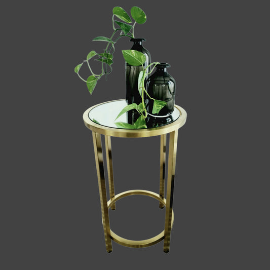 Dyako Gold Stainless Steel Side Table with Mirror Top