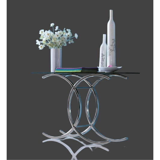 Corry Mirror Polished Stainless Steel Console with Clear Glass Top