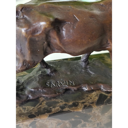 Cow Bronze Sculpture Handcrafted Deco Art On Marble