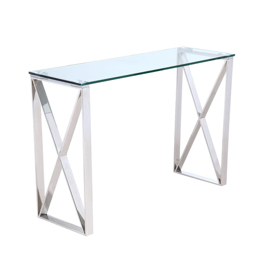 Tara Polished Stainless Steel Console with Clear Glass Top