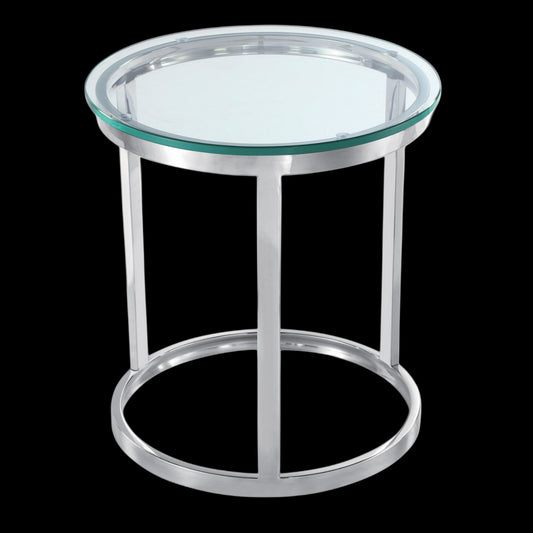 Soma Polished Stainless Steel Side Table with Clear Tempered Glass