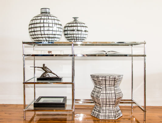 Small Hand painted Graphic Black and White Strips Vase