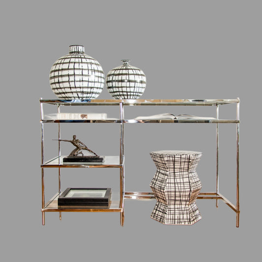 Zilan Polished Stainless Steel Console/ Study Desk with Multilevel Tempered Glass (Pick up only)