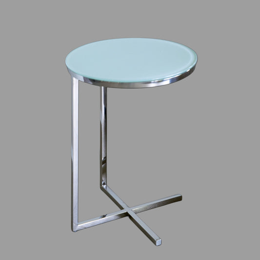 Zara Mirror Polished Stainless Steel Side Table with White Tempered Glass