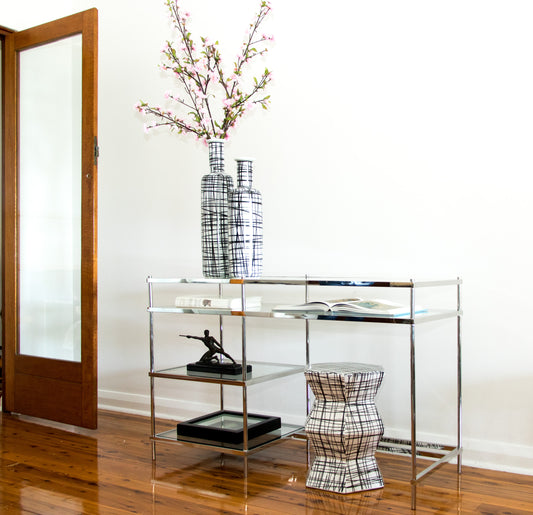 XX-Tall Hand painted Vase, Graphic black & white pattern