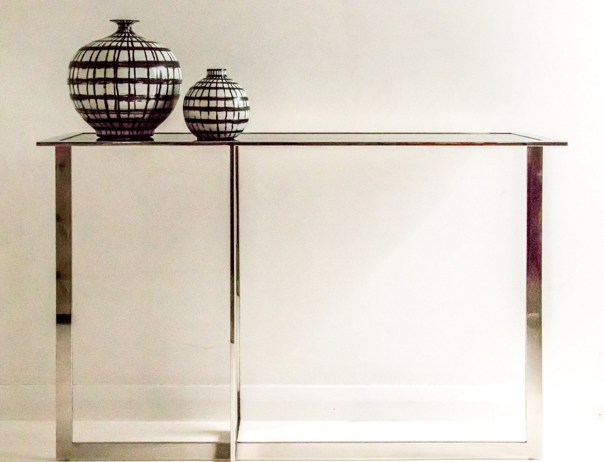 Hand painted Graphic Black and White Vase with Open Mouth