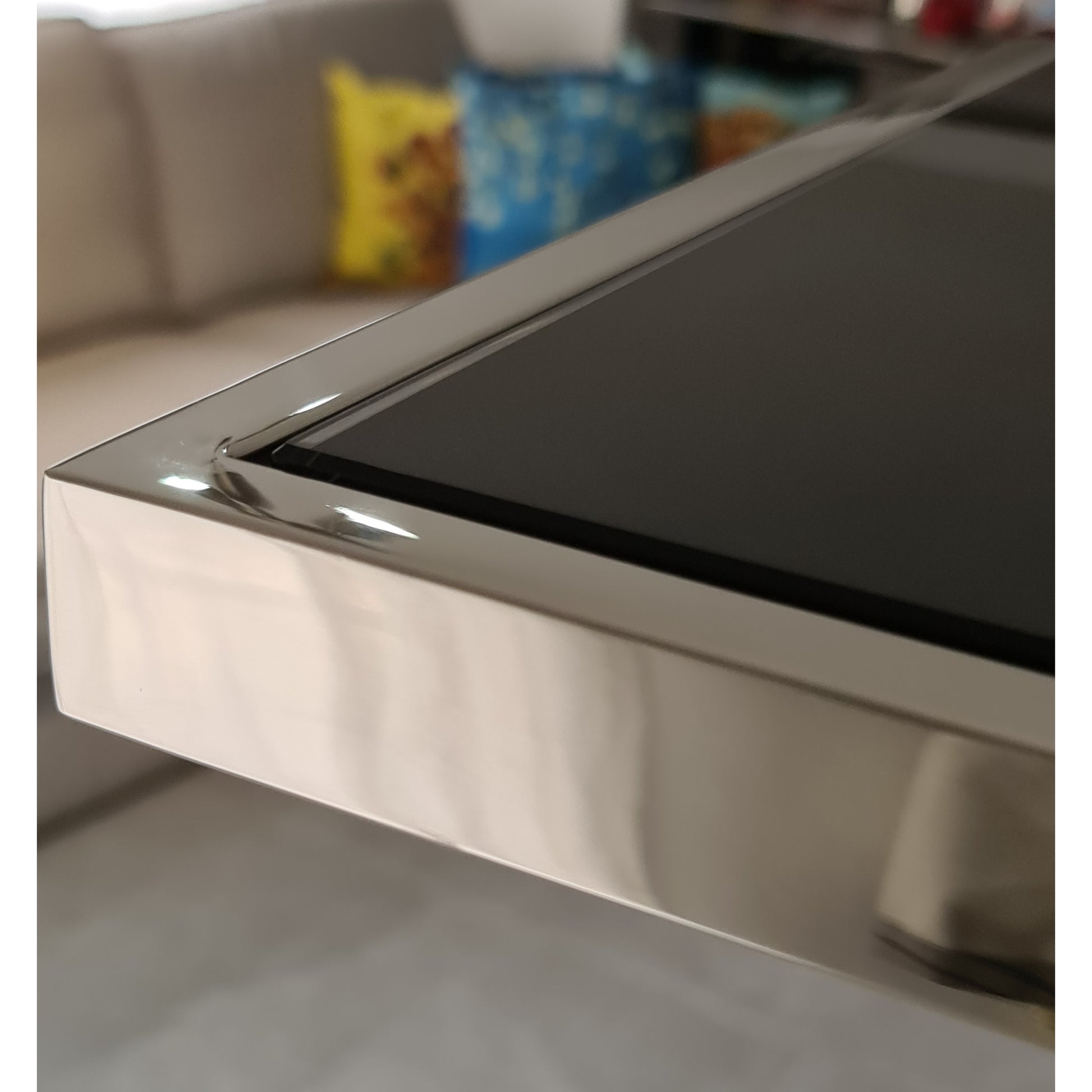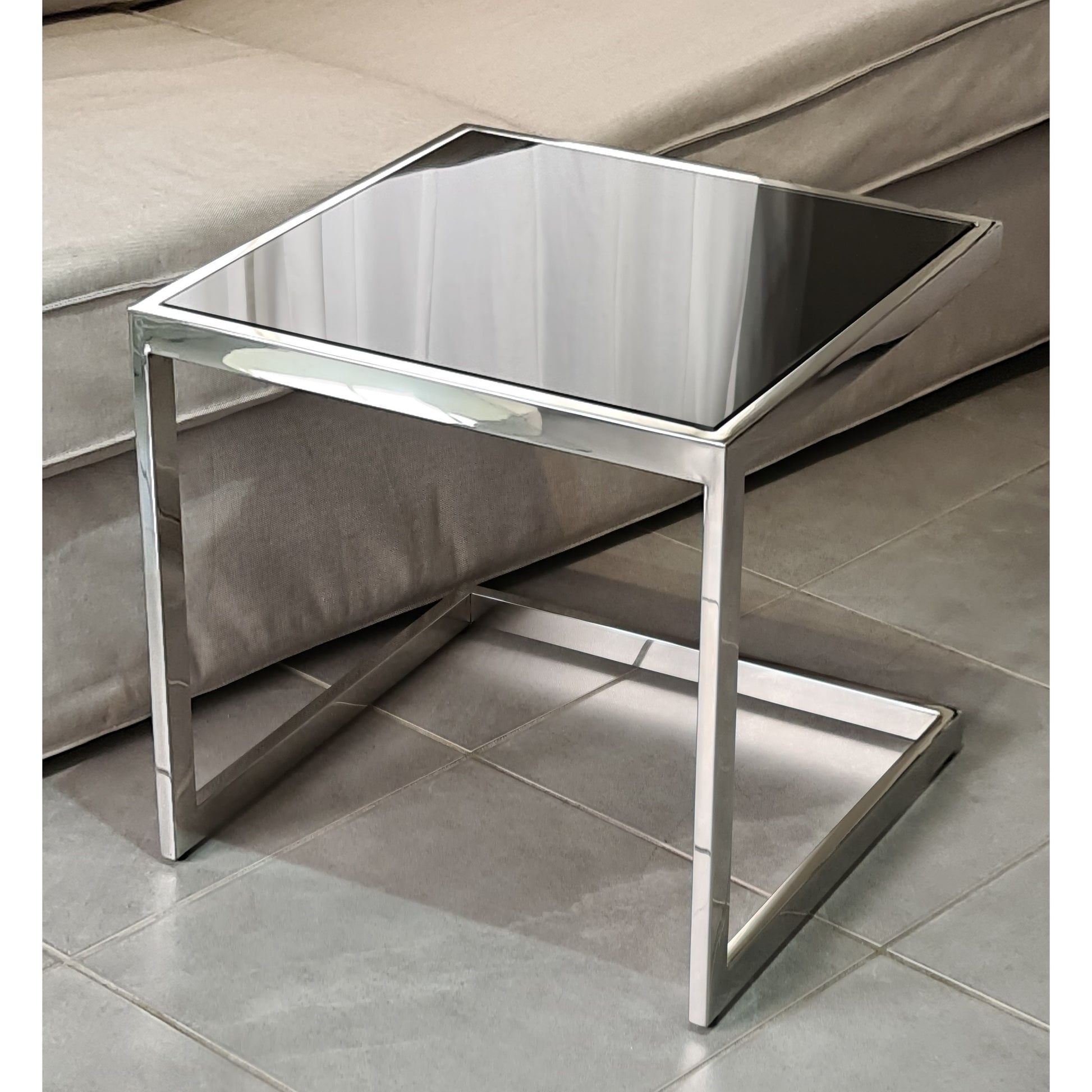 Malie Polished Stainless Steel Sid Table with Black Tempered Glass
