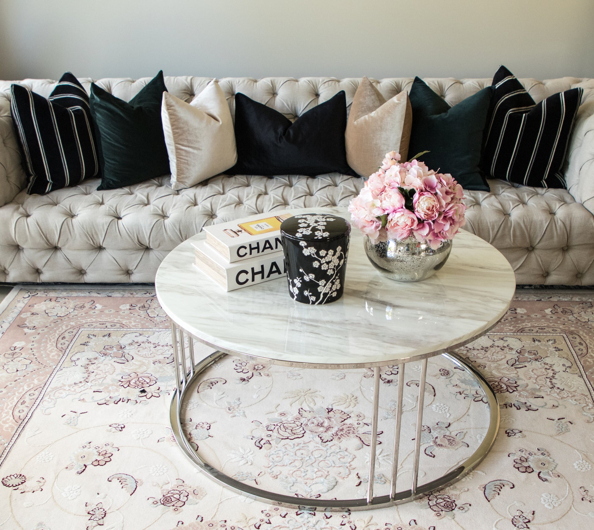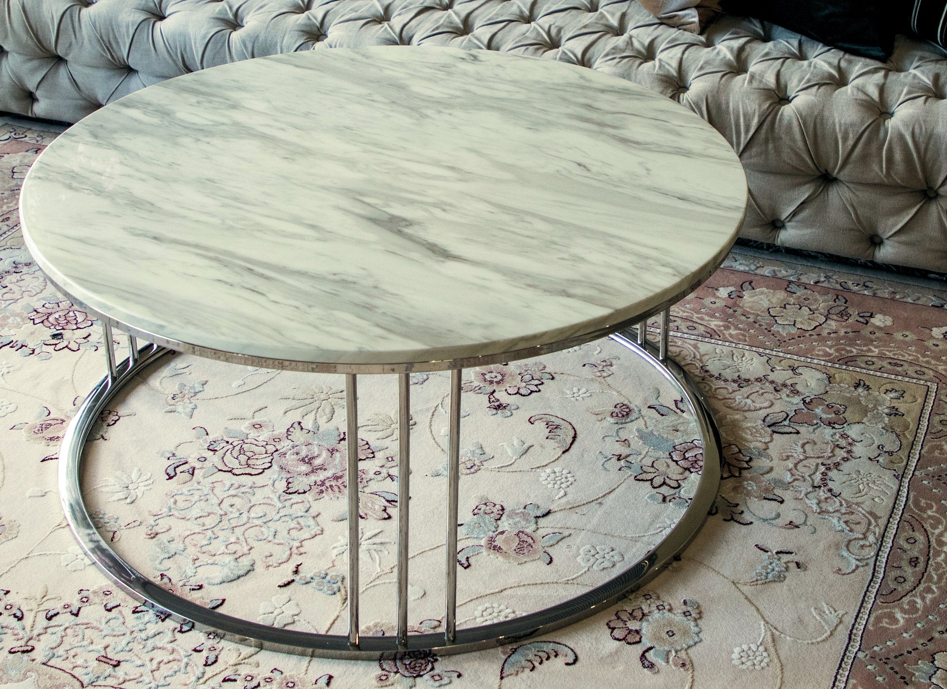 Daryan Mirror Polished Stainless Steel Coffee Table with White Marble Top (pick up only , Display item )