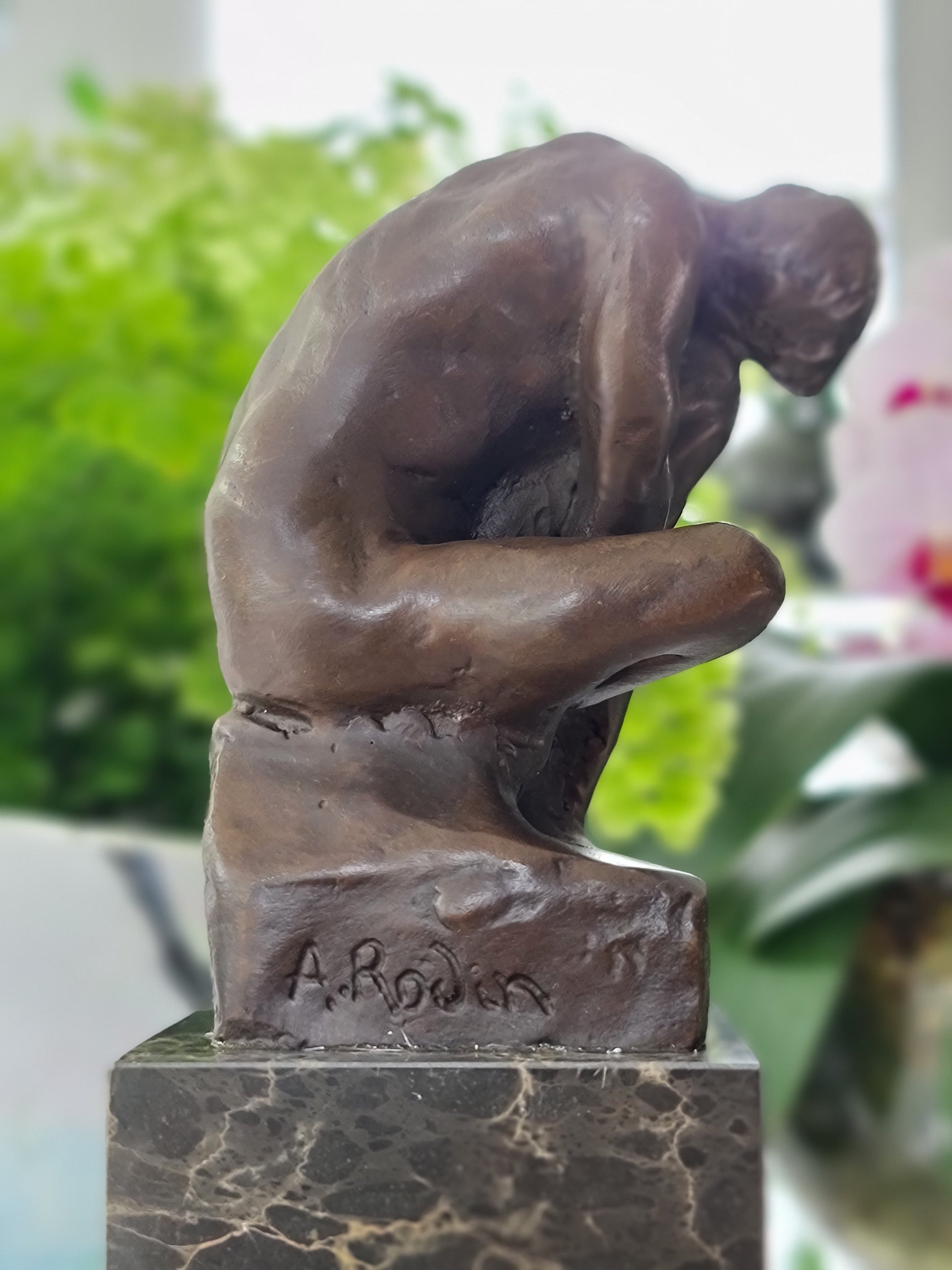 Nude Male Seated Man, Style of Rodin On Marble Base